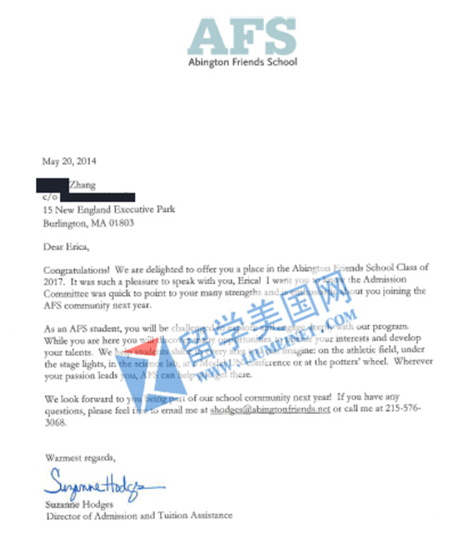 (留学网学生获得的阿秉堂贵格会学校offer)