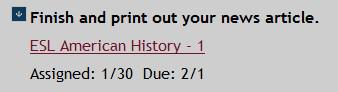 这是美国历史课的作业,似乎是完成一篇新闻题材的文章?不是很了解,回头问一下,老美的作业形式经常是花样翻新,出人意料,这次不知道又是弄什么新东东。