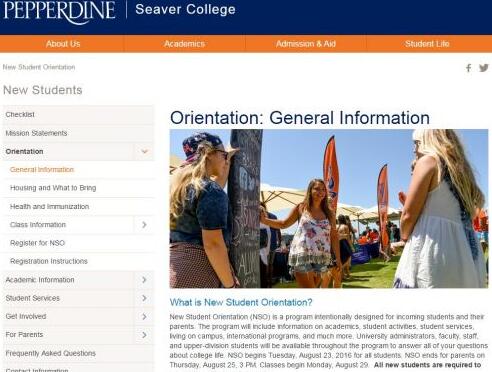 佩珀代因大学(Pepperdine University)官网的入学培训介绍