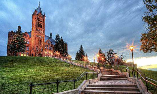 雪城大学位于美国纽约州中部的锡拉丘兹,素有CENTRAL NEW YORK之称,治安良好,环境优美,湖光山色,是十分美丽的都市。属于大陆型气候,四季分明,"逢春飘花,临夏荫浓,城秋枫红,瑞雪隆冬"是最佳写照。因受湖区气候效应的影响,锡拉丘兹在美国以降雪量丰富著称,因此Syracuse University又被美国人亲切地称为雪城大学,这便是" 雪城大学" 名称的由来。