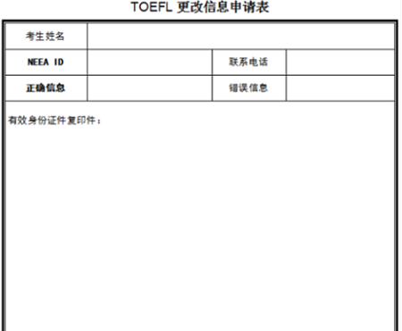 填好其他信息后,在“错误信息”的位置填写你要更改的邮箱或者电话号码,然后在左侧的“正确信息”的位置填写你现在手里可用的邮箱或者电话号码,然后传真给传真号码:010-82345672-1-3 或 010-61957800 或者发电子邮件到邮件到ibtcsr@mail.neea.edu.cn,2个工,2个工作日之后,即可更改完成。