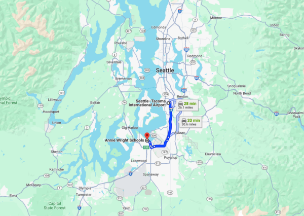 安妮怀特中学位于西雅图的Tacoma市,塔科马市是美国华盛顿州普吉特海湾南端的一个港口城市,约在西雅图和州府奥林匹亚之间,位于西雅图南面48公里,濒临皮吉特海峡的康门斯门特湾,现为木材加工中心,也有造船,冶金,铸造,电化和食品加工业。塔科马海滨多船坞和码头,是北美第六大集装箱港,全球最大的25个集装箱港口之一。