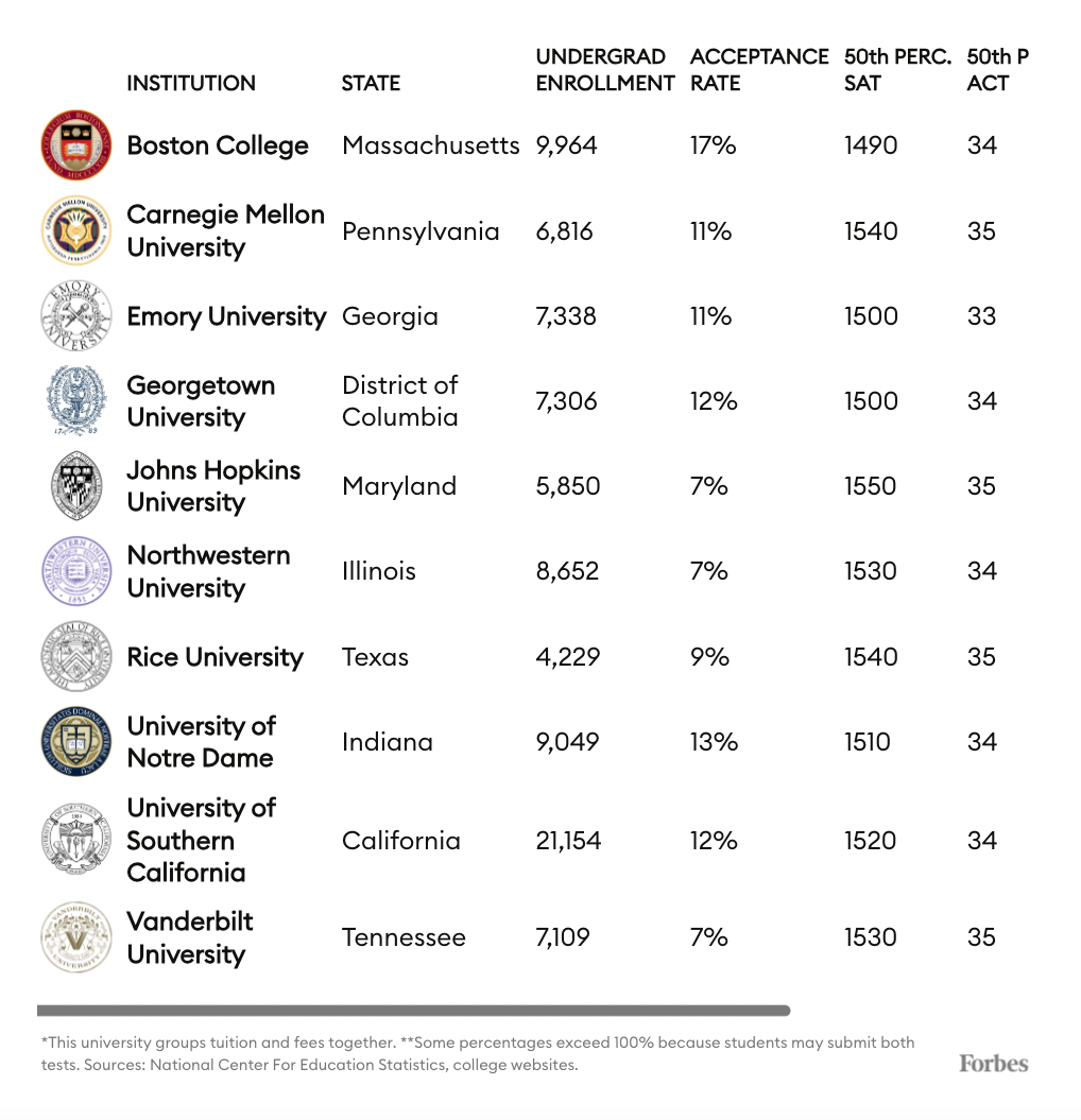 《福布斯》排除了传统的八大藤校,以及斯坦福、杜克、MIT、芝加哥大学这样的Ivy Plus学校,对学生人数在4000+的1743所大学进行筛选。