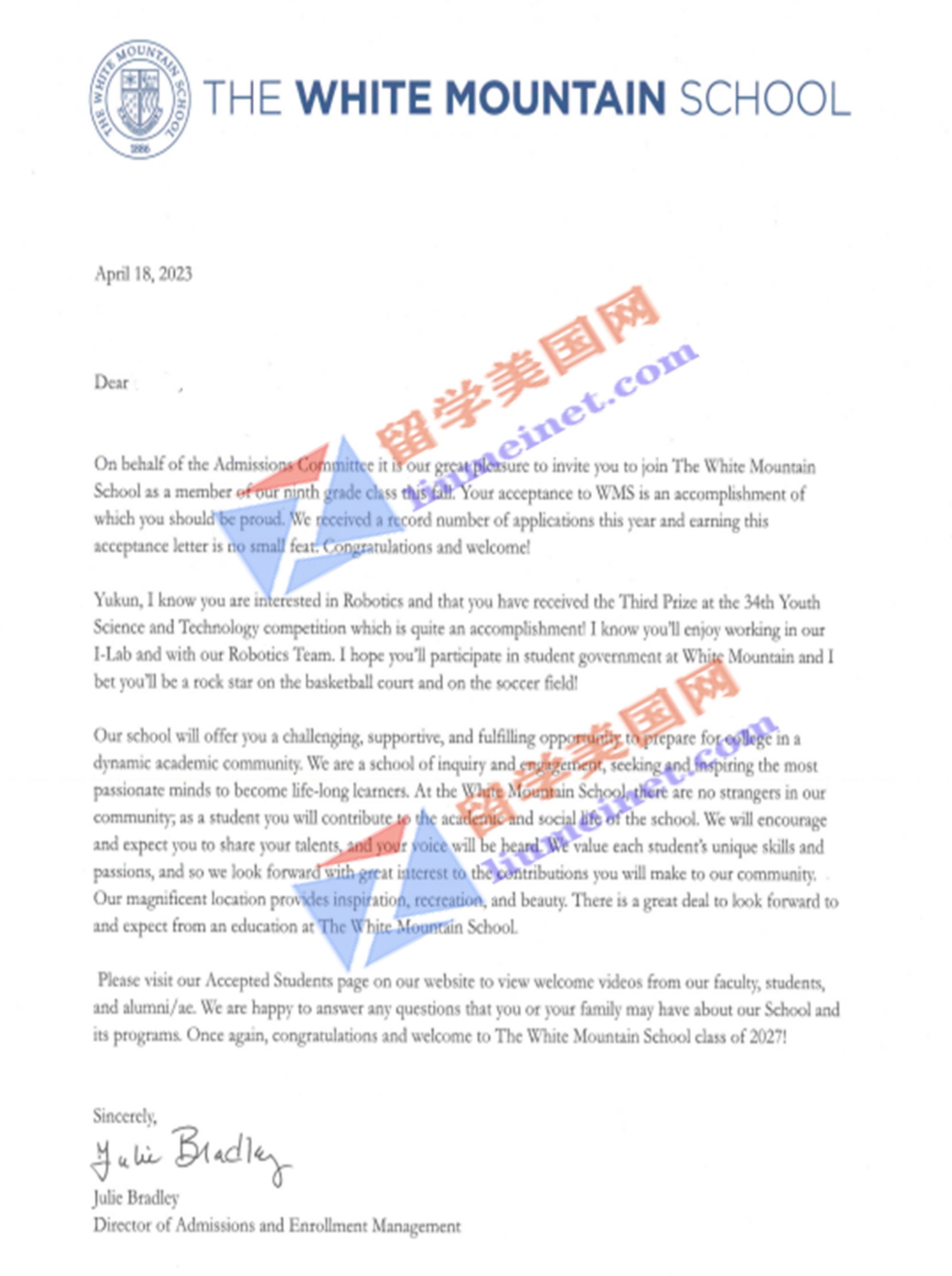 录取喜报!恭喜留美网L同学斩获白山中学The White Mountain School录取offer~