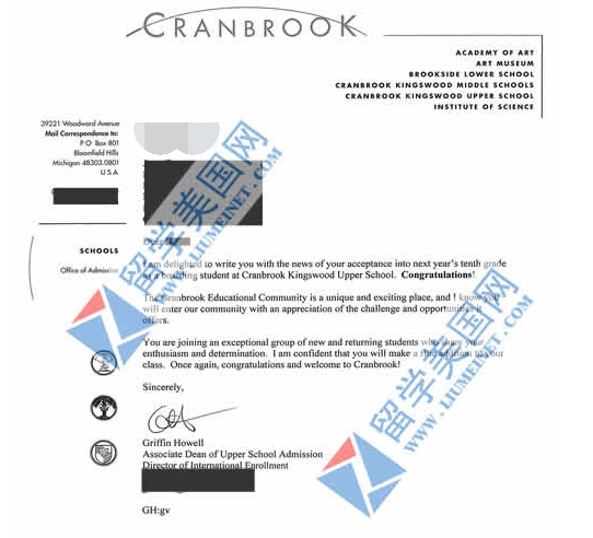 除了G同学自身的学术优秀之外,我们迈润肯团队的老师们帮孩子积极争取名额和面试机会,同时优化申请资料,帮助G同学做好面试培训,最终成功斩获克瑞布鲁克中学Cranbrook Schools的补录offer。