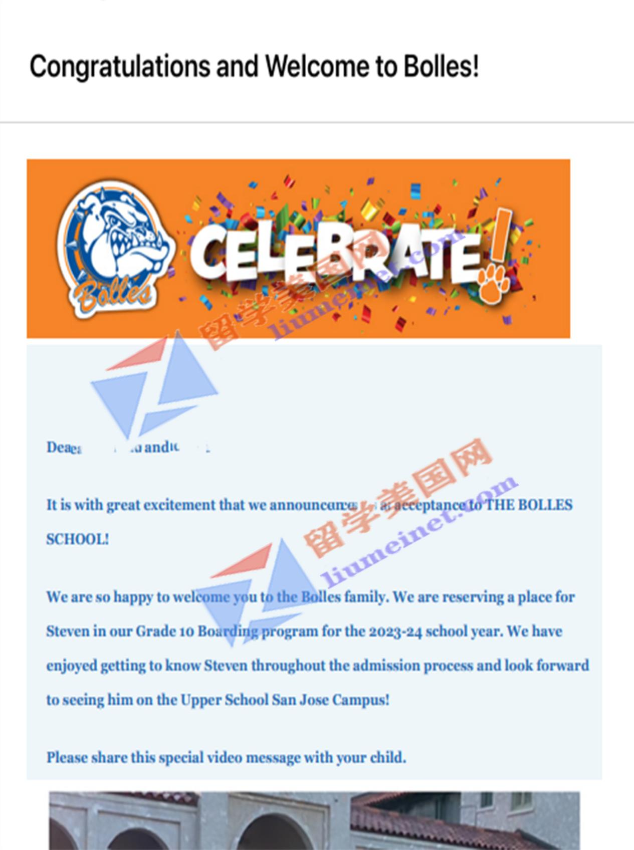 【录取喜报】留美网学子Z同学斩获博尔斯学校录取offer