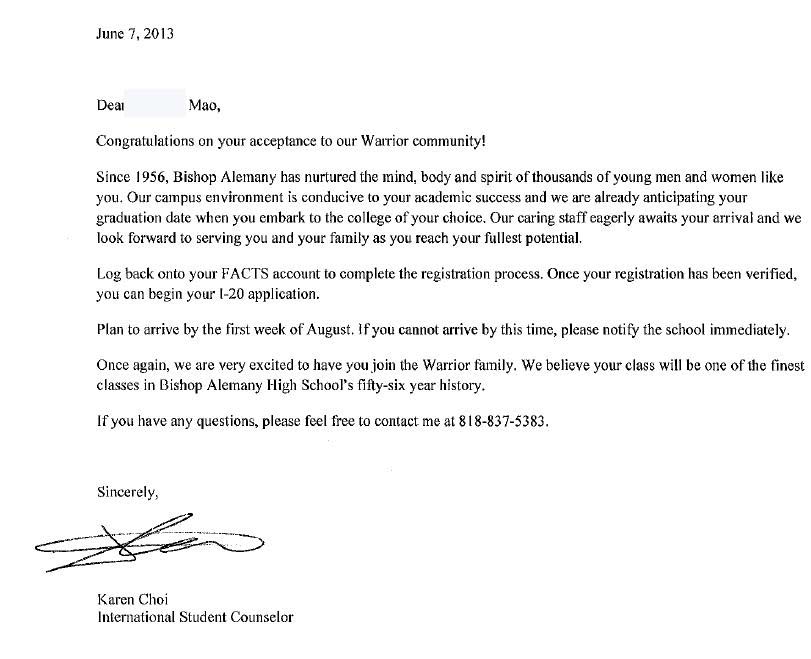 给该同学做申请的过程算是我们所做申请里感觉比较复杂的一个。这位同学早在两年前就开始申请,可是不幸遇到了非正规中介,两年时间无任何进展,却耗费了学生家长不少的时间和金钱成本。家长本来已经对中介极其反感,不再信任。但是经过我们不懈的努力,她的心终于阴转晴。后来一切按部就班准备,该同学和他的家长也都很积极的配合我们。后来在面试培训的时候我才更深入的了解他的个性。自信,幽默又调皮,就像一个招人喜欢的小猴子。整体上来说,他还是很配合的。不过他比较懒,对于我所整理好的材料,他总是说怎么这么多呀。又或者在培训的时候,偷吃一根薯条(因为当时赶时间,他还没吃午饭)。这让我哭笑不得。所以我只能来软的,对他循循善诱,一边夸奖,一边鞭策。最后,他没有辜负我的苦心,阿拉玛尼高中面试完当场就对他说欢迎来我们学校就读。他自己也开心的把这个好消息发表到自己的说说里。这个录取过程仅仅用了2周时间。不管是什么样的学生,都是家人的期望,祖国的未来。江山如此多娇,说的不就是我们这些可爱的申请人吗!衷心地祝愿他们在外求学之路越走越宽广!留美美国网至今已是硕果累累,桃李满天下!希望我们将来能帮助到越来越多的人实现他们的梦想。