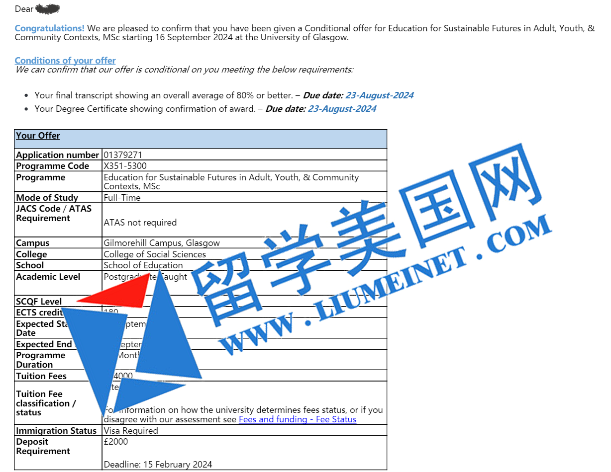 这些工作做好之后,再跟S同学以及S同学家人做了几次深度沟通,最终确定了选校方案,在S同学的配合下,留美网团队的全体努力下,最终拿到了格拉斯哥大学的录取offer,在这里也感谢S同学以及家人对留美网的认可,同时也感谢留美网团队的努力和付出,祝S同学在新的学校里,学业有成,大展宏图!
