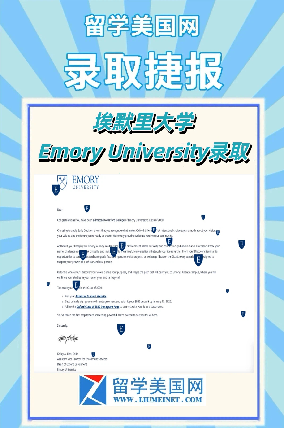 再次祝贺S同学!前程似锦,在埃默里继续书写你的精彩故事。