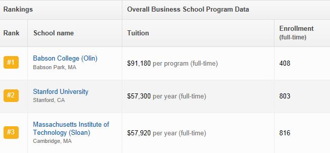 打开Babson College的网页,首页上的一句话直接体现了学校的骄傲之处:Tomorrow belongs to the entrepreneur. Will it belong to you? (明天属于创业者,它属于你吗?)这所只有2000名本科生,500名研究生的小学院,一直有一个引以为傲的全美第一:Entrepreneurship(创业学)。要知道,在USNEWS关于Entrepreneurship的排名中,Babson已经不知道多少次蝉联第一,而从第二名往后数,是大名鼎鼎的斯坦福、麻省理工学院、哈佛、宾大沃顿商学院、加州伯克利大学这些如雷贯耳的名字!
