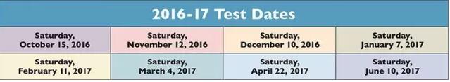 2016年下半年至2017年下半年SSAT考试时间安排如下: