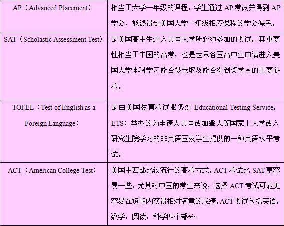 学生在完成必修及自选的课程外,可以按照自己的能力和兴趣选修大学预备课程,也就是AP课程,从而为进入美国一流高校打下坚实的基础。美国大学的入学考试是SATACT,目前国内大多数学生不能够取得高分是由于中美教育的差异及英语水平欠佳,而在美国读高中的交换生就有了足够的优势。