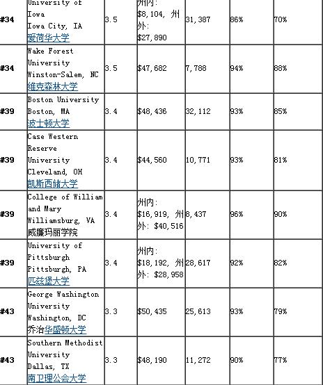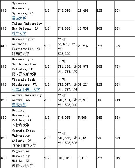 2016年美国本科商学院排名50